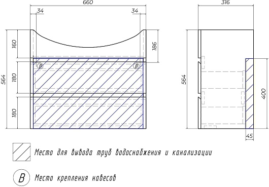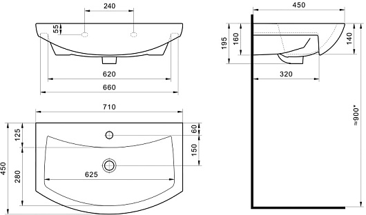 - Раковина с переливом.