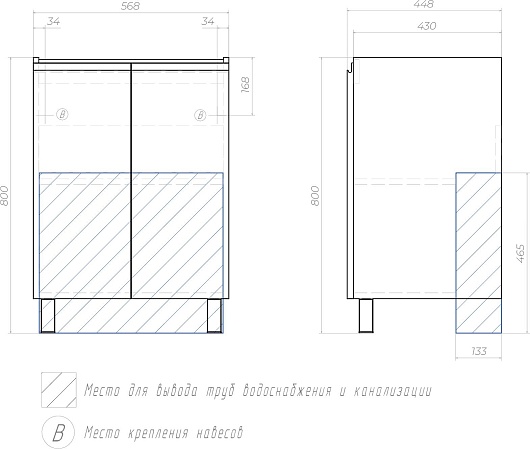 В комплекте: тумба, раковина, зеркало, ножка (2 шт.), крепеж.