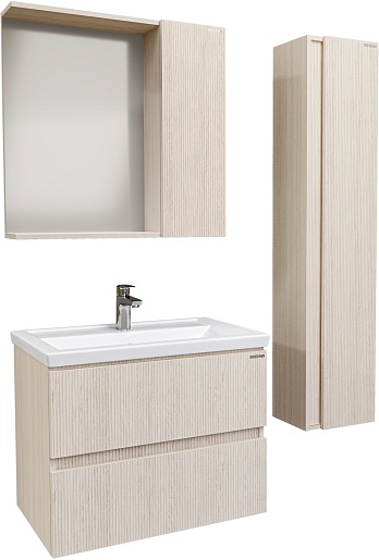В комплекте: тумба, раковина, зеркальный шкаф, крепеж.