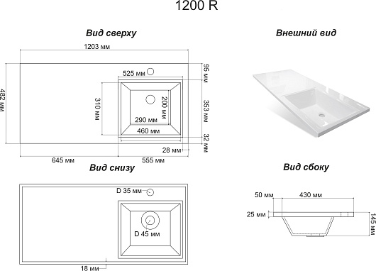 - Правосторонняя раковина Мадлен 120 со столешницей под стиральную машину.