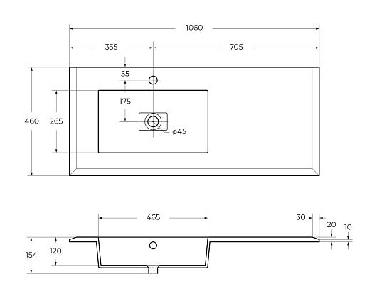 Расположение столешницы-СправаРасположение смесителя-Посередине