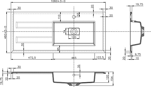 Расположение столешницы-СлеваРасположение смесителя-Посередине
