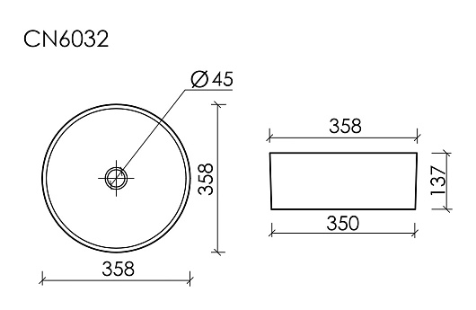 - Умывальник чаша накладная круглая Element 358*358*137мм.