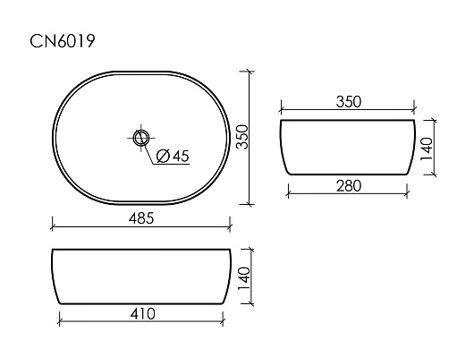 - Умывальник чаша накладная овальная Element 480*350*140мм.