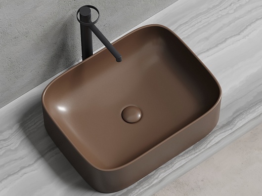 - Умывальник чаша накладная прямоугольная (цвет Темно-Коричневый Матовый) Element 505*380*150мм.
