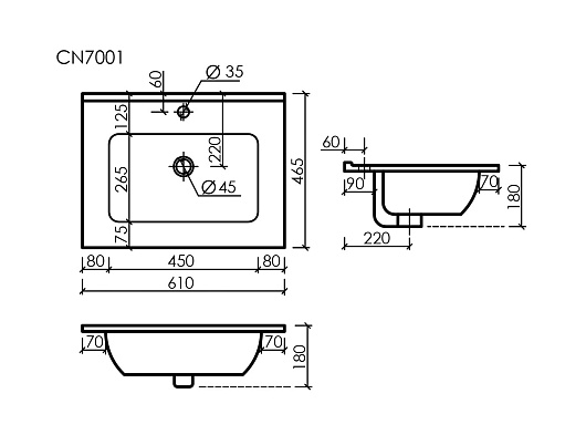 Ceramicanova Мебельная раковина Element 61 CN7001 белая