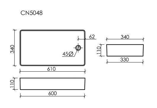 - Без отверстия слива - перелива.