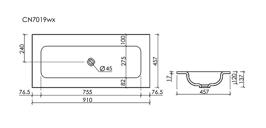 - Коллекция Grace. Размер 910x457x137мм, без отверстия под смеситель.