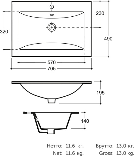 Мебельная раковина Onika Керамин Бергамо Нова 70 - арт. CDB00018485.
