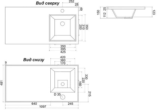 - Одно отверстие под смеситель.