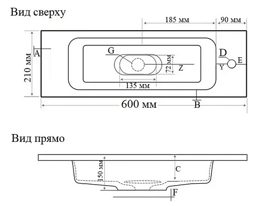 - Встраиваемая сверху.- Установка донного клапана не предусмотрена.