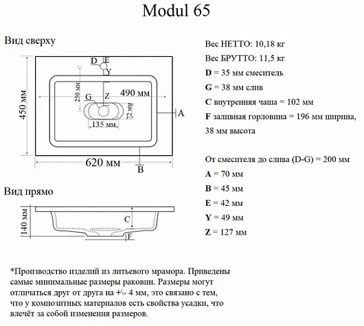 - Встраиваемая сверху.- Установка донного клапана не предусмотрена.