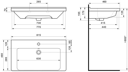 - Одно отверстие под смеситель.