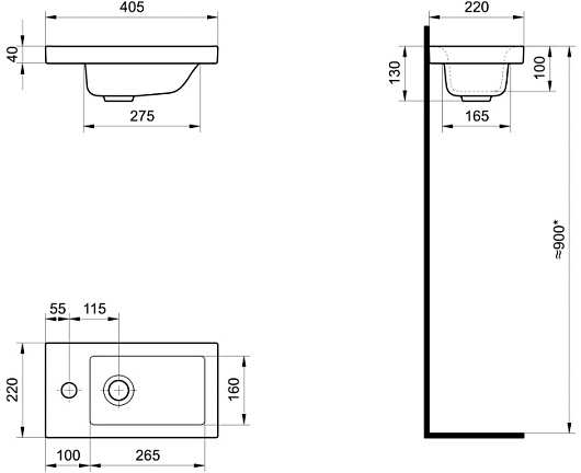 - Одно отверстие под смеситель.