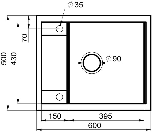 - 3 размеченных отверстия для смесителя.