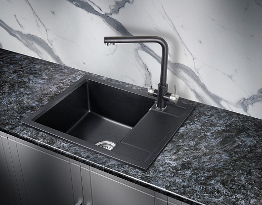 Milacio Мойка кухонная Navarra 60 Cuarzo черная матовая