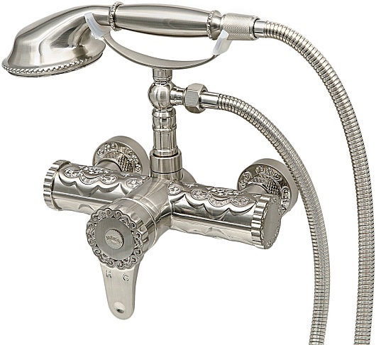 В комплекте: смеситель, душевая лейка, душевой шланг, эксцентрик (2 шт.), отражатель (2 шт.).