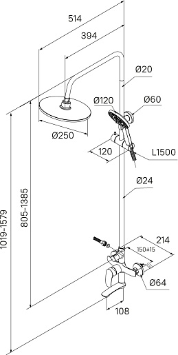 - Верхний душ диаметром 250 мм.