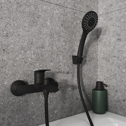В комплекте: смеситель, душевая лейка, душевой шланг.