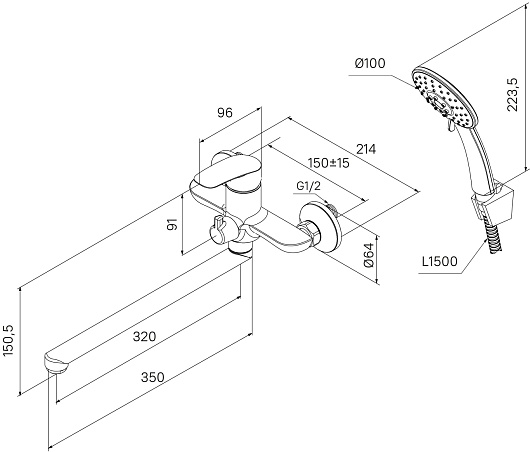 В комплекте: смеситель, душевая лейка, душевой шланг.