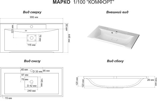 Мебельная раковина Комфорт 100