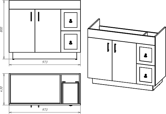 - 2 распашные дверцы, 2 ящика.