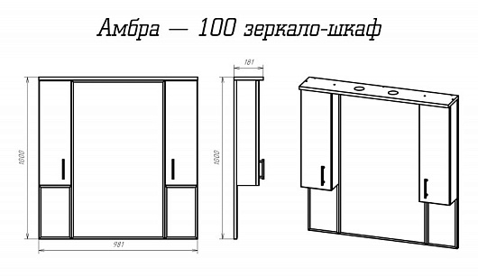 Зеркало-шкаф Амбра 100, арт. П-Амб02100-0322Я