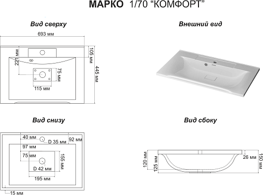 Мебельная раковина Комфорт 70