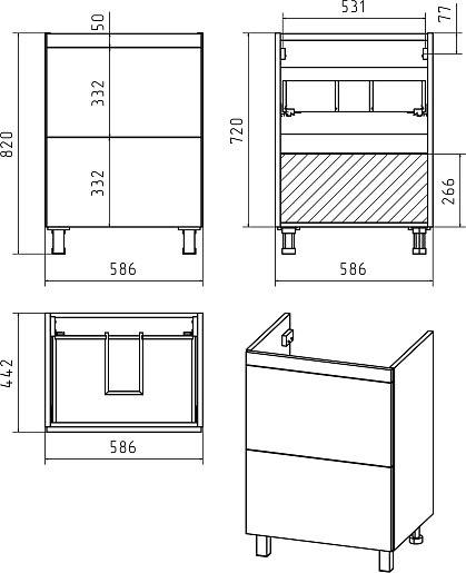 В комплекте: тумба, раковина, зеркальный шкаф, ножка (4 шт.), комплект креплений.
