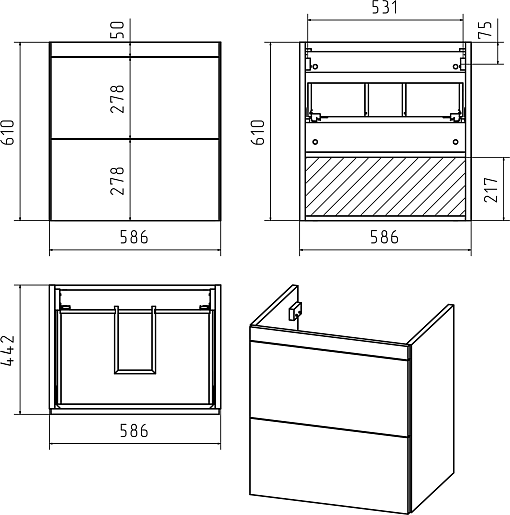 Тумба под раковину Атлантик 60 2 ящика подвесная серый камень