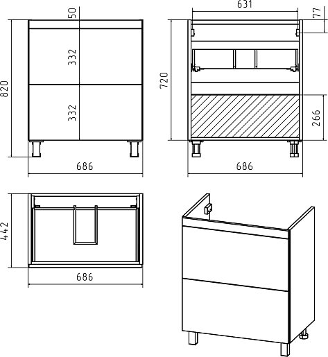 В комплекте: тумба, раковина, зеркальный шкаф, ножка (4 шт.), комплект креплений.