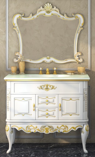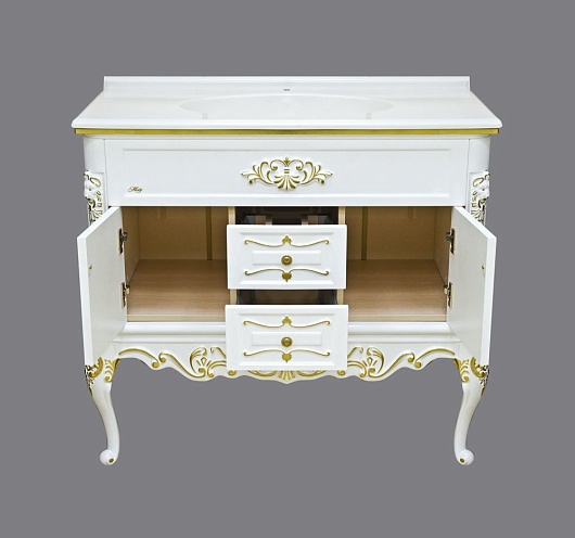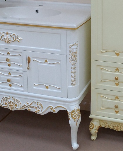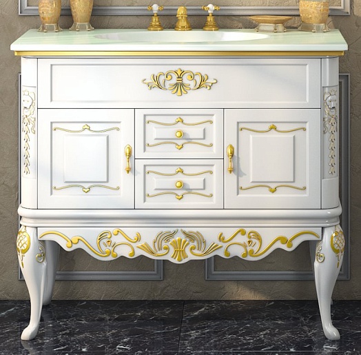 Тумба для умывальника Bianco 90 белая сусальное золото