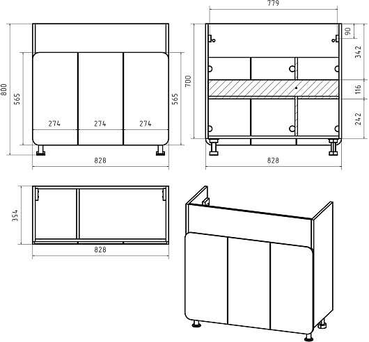 В комплекте: тумба, ножка (4 шт.), раковина, зеркальный шкаф, комплект креплений.