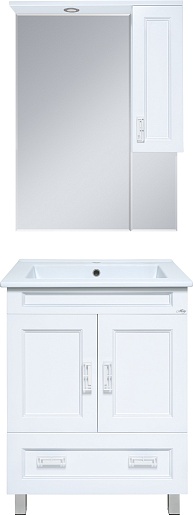 Комплектация: тумба, раковина, зеркальный шкаф, комплект креплений, ножка (4 шт.).