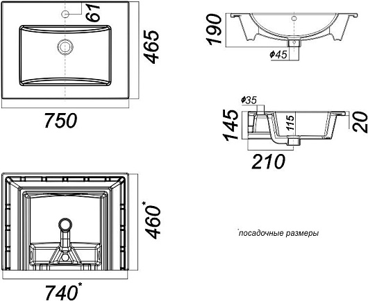 Мебельная раковина Quadro 75