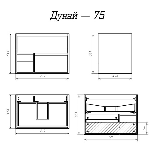 Дунай 75 тумба подвесная, с двумя ящиками, нишей/полочкой