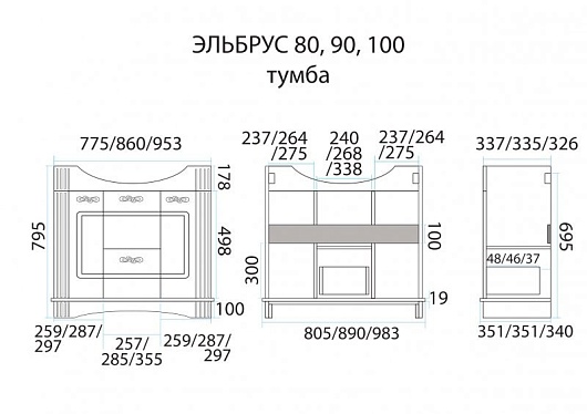 Мебель для ванной «Эльбрус 90»