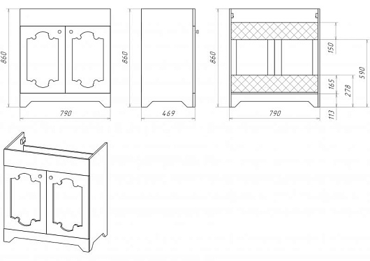 - Тумба под раковину Элис 80, арт. Л-Эли01080-033Пр: распашная дверца - 2 шт.