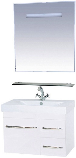 Комплектация: зеркало со встроенным светильником, стеклянная полочка.