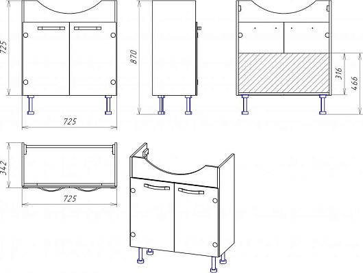 - Эмма 75 тумба, два распашных фасада, доводчики, фурнитура-хром.