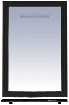 Комплектация: зеркало для ванной в раме с подсветкой и полкой.
