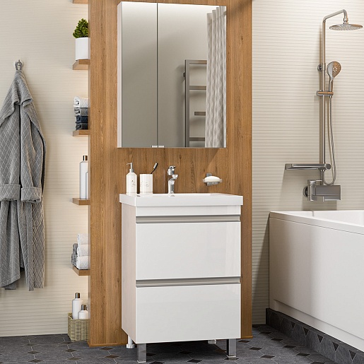 В комплекте: тумба, раковина, зеркальный шкаф, ножка (4 шт.).