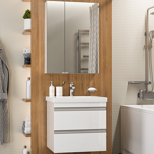 Зеркальный шкаф Misty Аура 60 белый - арт. Э-Аур02060-01.