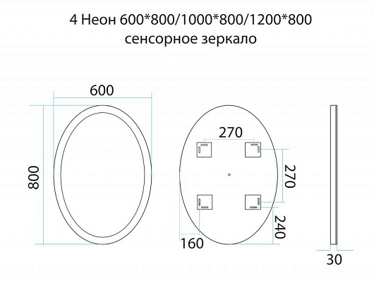 Зеркало Неон 4 LED 60x80 сенсор на зеркале