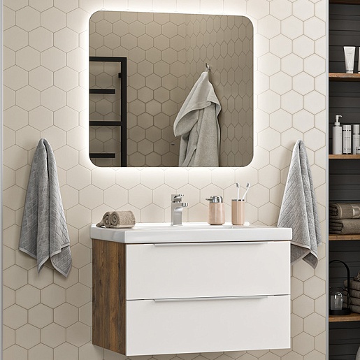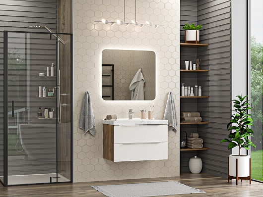 Тумба под раковину Карат 80 подвесная белая/дуб галифакс олово