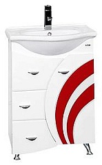 Тумба для умывальника Каролина 60 3 ящика R красное стекло