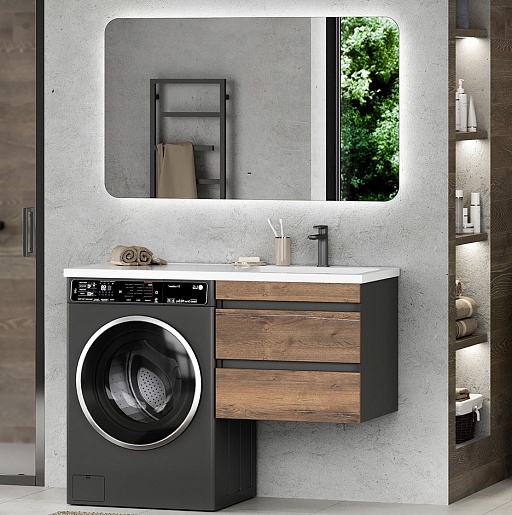 Misty Мебель для ванной Коломбо 120 R подвесная под стиральную машину дуб галифакс/антрацит