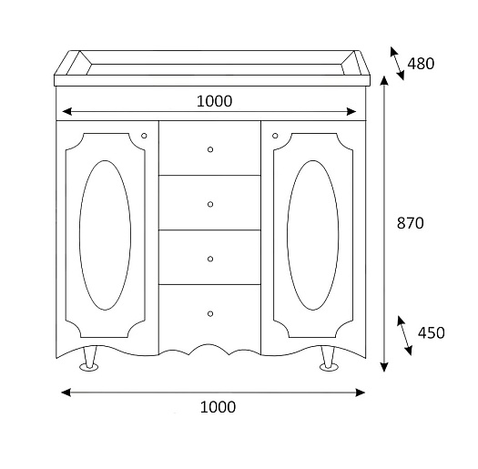 Тумба для умывальника Монако 100 белая патина