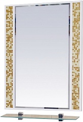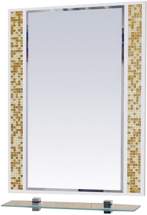 Комплектация: зеркало для ванной с декором мозаика и стеклянной полкой.