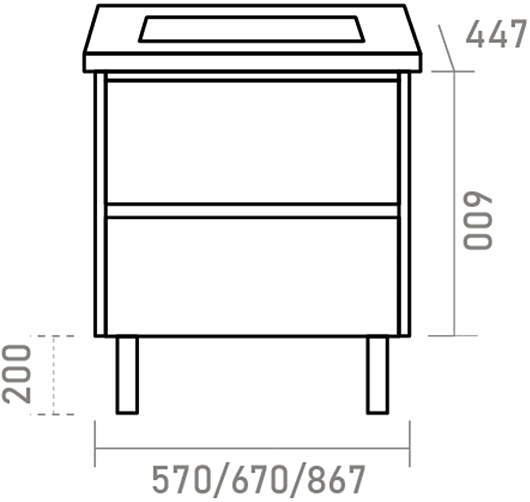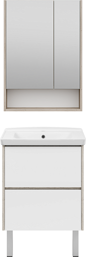 В комплекте: тумба, раковина, зеркальный шкаф, подвес (2 шт.), ножки (2 шт.).